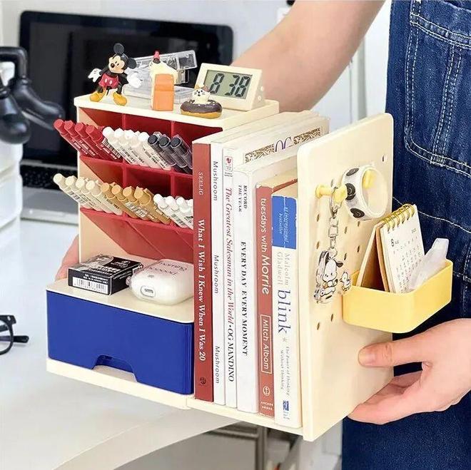 笔、本子、文件夹全都有了自己的家,还自带抽屉能藏各种小零碎,洞洞板还能挂钥匙和小饰品。双色可选治愈系配色,简约设计光看着就心情好好,现在我的工位整洁又养眼,工作效率都提升了!